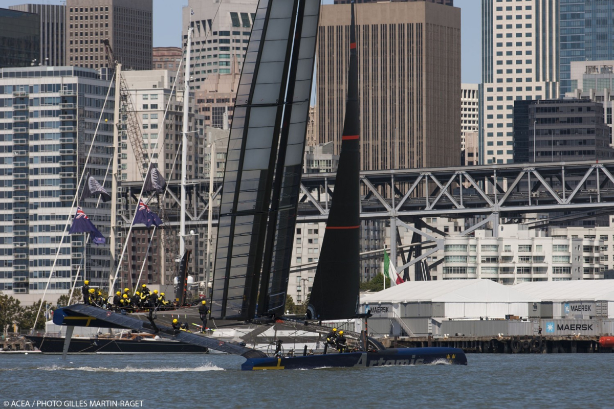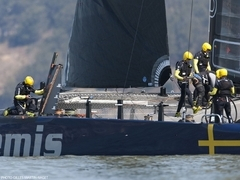 Artemis var under gårdagen ute och seglade sin nya AC72:a för första gången. Båten som döpts till Big Blue seglade runt i San Francisco i upp till 15 knops vind och man FOILADE på jungfruturen. Det tog längre tid innan de andra teamen kom upp på foilsen för första gången men Artemis har en tuff tidspress på sig så man måste gå lite nsabbare fram i sina tester.