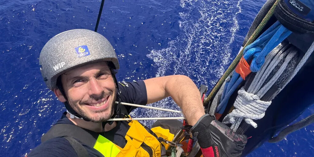 Charlie Dalin inspekterade masten den 2 januari och passade på att föreviga ögonblicket. Foto: Charlie Dalin