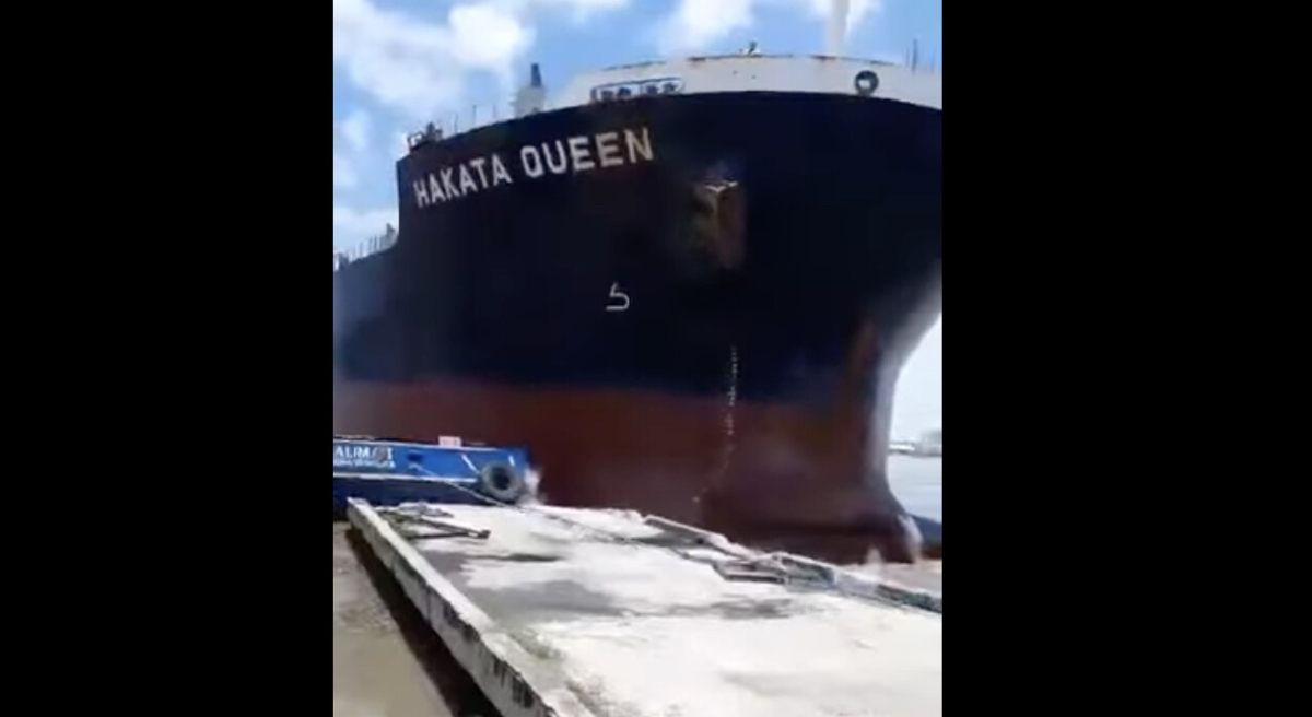 I fredags morse förlorade bulkfartyget Hakata Queen kontrollen i Barranquilla Port, Colombia. Klippet nedan som är filmat med mobil visar hur fartyget driver i sidleds och till slut rammar piren med full kraft.