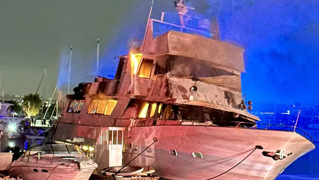 Onsdagen den 19 september bjöds Marina del Rey på en lika oväntad som ovälkommen ljus- och ljudshow. En lyxyacht med både ammunition och fyrverkerier i lasten hade fattat eld. Lågorna sträckte kring nio meter upp i luften och enligt myndigheter tog det över två timmar att släcka branden.