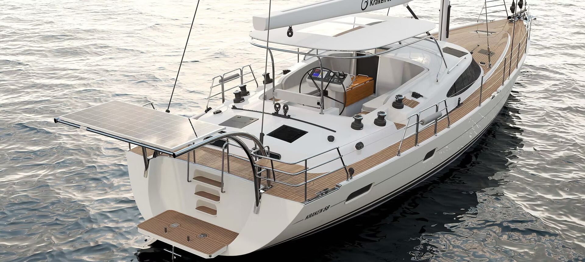 Några specifikationer för Kraken 58: Längd 17,67 m >>> Bredd 5,20 m >>> Djupgående 2,30 m >>> Deplacement 28 ton.
