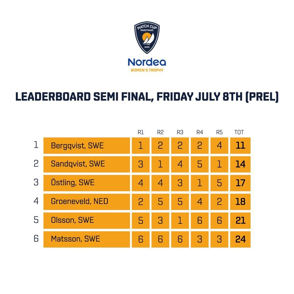 Även Team Bergqvist Match Racing lyckades kliva högst upp i rankingen under gårdagen. De skriver på sin facebooksida (fritt översatt): "Tre dagar av fantastisk segling avklarad, och i morgon är det dags för finalen där de fyra bästa kommer att fightas om segern. Första laget som spikar två gånger tar hem bucklan. Låt festen börja."