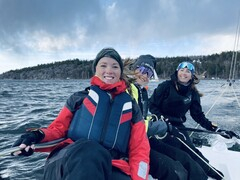 – Jag upplevde tröskeln att komma in i kappseglingsvärlden hög. Nu halkade vi in lite på ett bananskal och har tagit det därifrån. Tillsammans försöker vi i laget på olika sätt bygga på med kunskaper. Vi hittar på mycket annat roligt också, som att åka skidor och hyra båt. Vi trivs väldigt bra ihop.