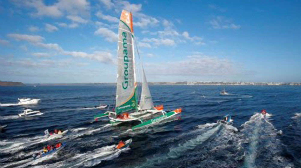Fortunately the North Atlantic is shaping up to be more favourable. As was the case during the descent a month earlier, Groupama 3 finds her way into some established tradewinds and then manages to avoid getting hemmed in by a zone of high pressure offshore of the Cape Verde archipelago. As such she can finally bend her course towards the Bay of Biscay from the latitude of the Canaries. Bruno Peyron and his crew didn't score well over this section of the course five years earlier, which is just as well! It isn't until the 46th day at sea that Franck Cammas and his nine crew get ahead of the reference time again. The next three days are fast in a disturbed air flow and the giant trimaran's lead continues to increase as they make for Ushant, finally stretching to nearly 1,500 miles as they cross the finish line.