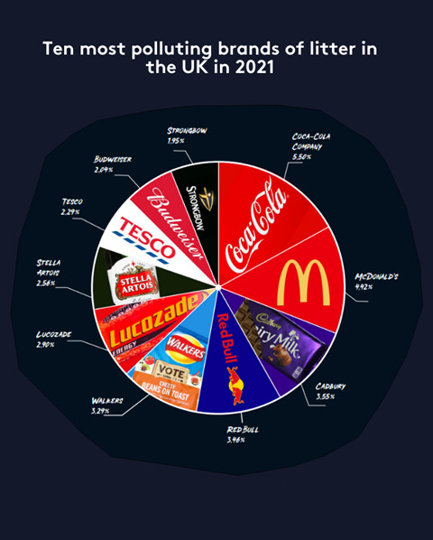 Rapporten kunde konstatera att Coca-Cola Company, PepsiCo och Heineken International är ansvariga för nästan en fjärdedel (23 %) av allt skräp med synlig logga (varumärke), medan över hälften (51 %) av skräp med synlig logga kan spåras tillbaka till 10 varumärken; Coca-Cola, McDonald's, Cadbury, Red Bull, Walkers, Lucozade, Stella Artois, Tesco, Budweiser och Strongbow.