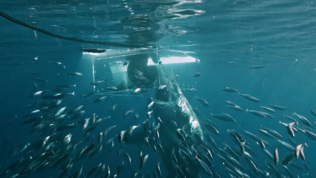 Ger man sig in i leken så får man leken tåla kan man ju tycka (hajguiden Jimi Partington tar händelsen kanske inte med ro, men viss entusiasm kan ändå skönjas så här med facit i hand), samtidigt är det läckert att se världens största nu levande rovfisk agera.