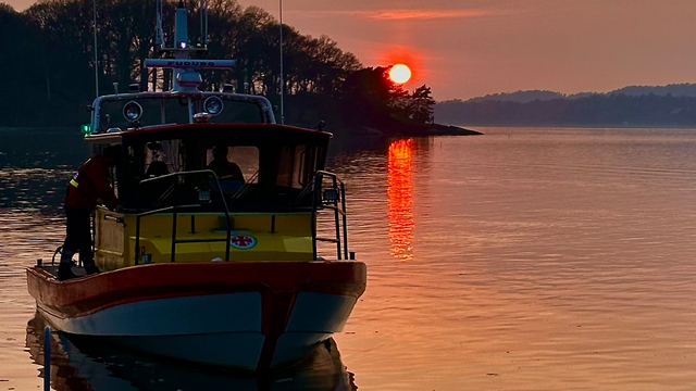Mitt under en övning får RS Stenungsund larm om en person överbord. Redan efter fyra minuter är sjöräddarna framme på plats med två enheter. Den nödställda hålls vid ytan av en kompis som fortfarande befinner sig ombord på båten, men orken börjar ta slut. Stationens öppna räddningsenhet går upp bredvid personen i vattnet. Med ett fast grepp får sjöräddarna upp personen ur vattnet och ombord till säkerhet.