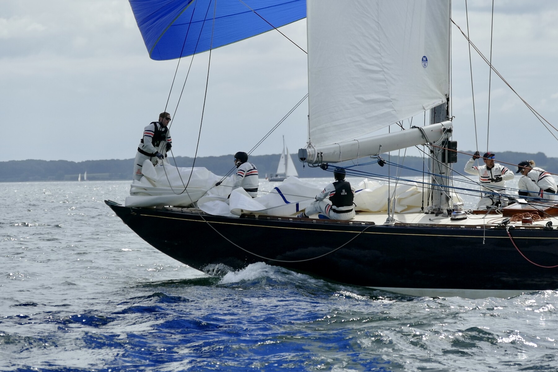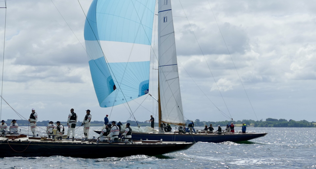 Dyvig ligger långt ner på Jylland nära tyska gränsen, 27 sjömil från Flensburg där nästa regatta hålls i byn Glucksburg. De första seglingarna var Tune up inför Robbe & Berking Sterling Cup. Namnet känner man igen, det är ju ett av världens kändaste varv för classic yacths, den rödvita triangelflaggan finner man lite varstans. Oliver Berking äger även 12 mR Jeanetta som har det rutiga mönstret på skrovet som knappast går att missa i flottan. Onsdagen blir hursomhelst en mellandag med lite vind men ändå fetch race emellan hamnarna. Propellern hade vi ju givetvis plockat bort så det var spinnaker upp så ofta det gick. In igenom kanalen innan bron i Sönderborg hann vi inte packa spinnakern innan den skulle upp igen, tur att vi hade en till. Hur det gick i Flensburg får ni reda på i nästa nummer.