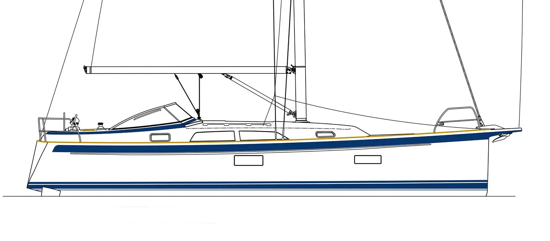 Seglingsmässigt kommer båten att ge mycket komfort och seglingsglädje. Riggen är smidig och lätthanterlig. Självslående fock är en option. Nytt för den här storleksklassen är att storskotssystemet ligger för om vindrutan, ur vägen för sittbrunnens aktiviteter. Nytt är även att fockskotskenan ligger uppe på rufftaket för ännu effektivare höjdtagningsförmåga.