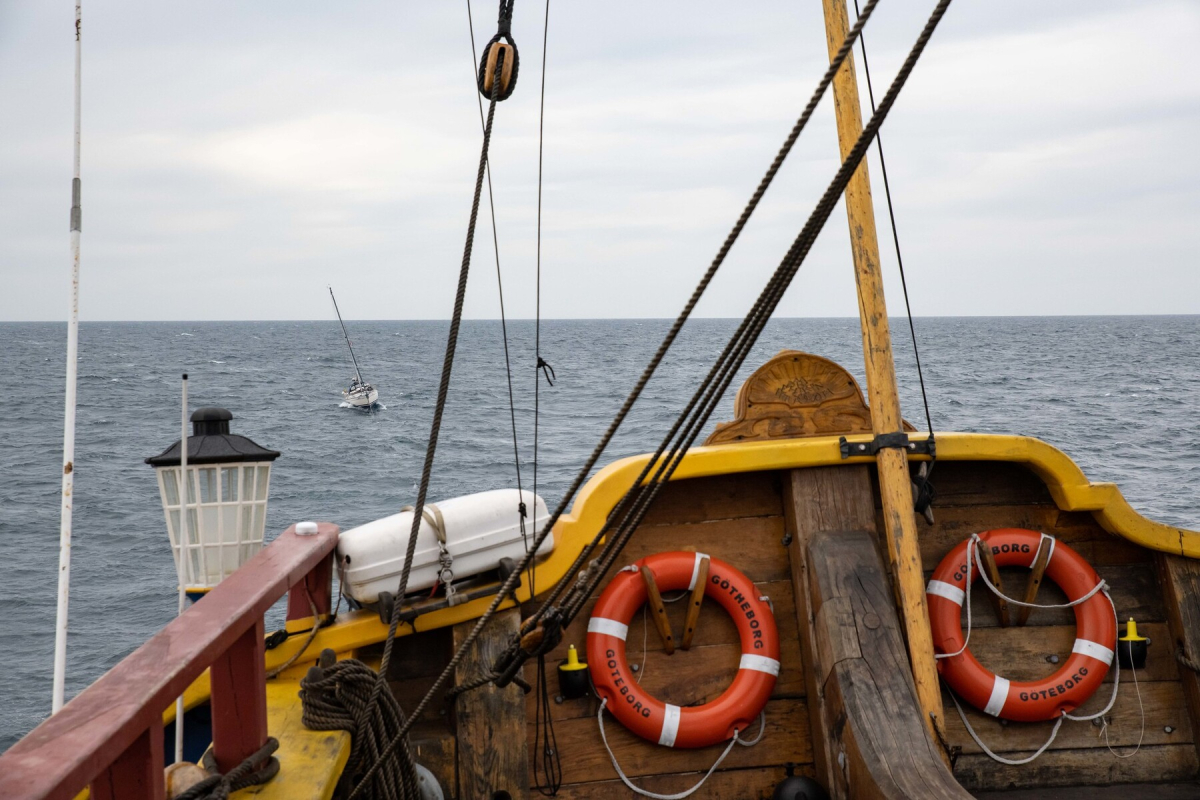 Besättningen på Götheborg visade stor professionalism och vänlighet mot oss. De anpassade sin hastighet till storleken på vår båt och väderförhållandena. Vi kände oss åtföljda av mycket professionella seglare. Varje timme ringde vakthavande befäl på Götheborg för att se till att allt gick bra.
