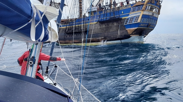 Vi betonade flera gånger att vi var ombord på en liten segelbåt på 8 meter, men svaret var detsamma varje gång: "Vi är en 50-meters tremastad segelbåt, och vi erbjuder vår hjälp med att bogsera er till Paimpol." Vi var förbryllade över storleksskillnaden mellan våra två båtar, eftersom vi fruktade att bli bogserade av en båt som var för stor och med för hög hastighet som kunde skada vår båt.