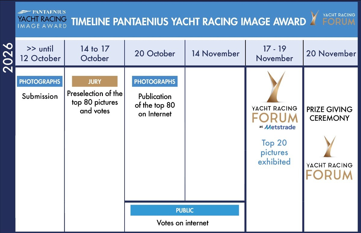 Pantaenius Yacht Racing Image Award uppmärksammar de "bästa" fotografierna från kappseglingens värld. Nu öppnas tävlingen återigen för bidrag. Professionella fotografer världen över bjuds in att skicka in sina bästa fotografier tagna mellan den 13 oktober 2025 och den 12 oktober 2026 – fotografier som fångar sportens intensitet, skönhet och känsla.