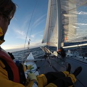 Samtidigt som vi funderade så började vinden öka och vågorna byggde, sjön blev väldigt krabb. För er som har seglat f18 så känner ni nog igen er i olustkänslan när fören dyker i nästan varje våg och vi går från 15 knop till 5 knop..tecken på att det kan bli stökigt! Båten verkade dessutom tycka att vi duschar för sällan för i nästan varje våg fick vi en ny dusch!