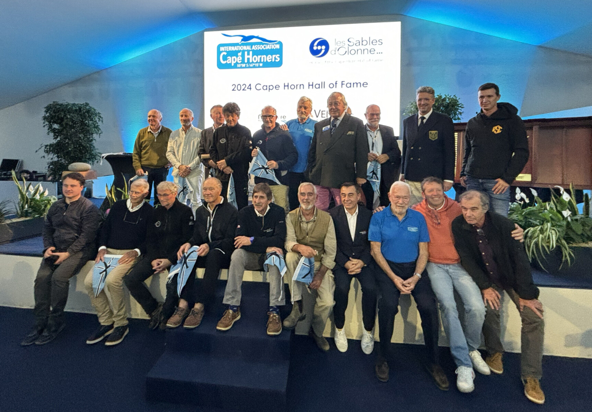 Fotografiet ovan. Främre raden; Marco Nannini, Roger Nilson, Bernard Stamm, Francis Joyon, Skip Novak, Loick Peyron, Alain Leboeuf, President of the Vendée region, Sir Robin Knox-Johnston, Philippe Delamare och Francois Gouin. Bakre raden; Louis Robein, Michel Desjoyeaux, Andrew Cape, Jean Le Cam, okänd, Jean-Luc van den Heede, Archie Fairley (Ordförande Int.Assoc. of Cape Horners), Don McIntyre, Yannick Moreau (Borgmästare Les Sables d’Olonne) och Riccardo Tosetto.