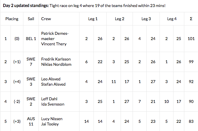För två dagar sen var det stora ändringar i vindstyrka under dagen. Till en början blåste det på bra medan vinden avtog mot slutet av dagen och banan blev nerkortad. Igår däremot blåste det mer konstant över hela dagen med vindar på 8 till 10 m/s och det blev segling mellan många trånga passager.