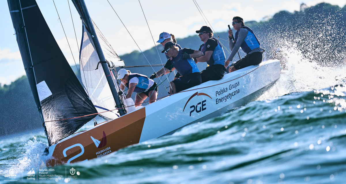 Theo Westerlind med besättning på ungdoms-VM i matchracing 2025 i Gdynia. Foto: Robert Hajduk