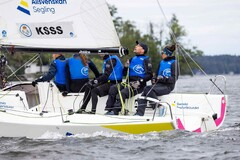 J70 säsongens mål var EM i Sandhamn. Där var hon en av tre kvinnliga skeppare. Foto: Daniel Stenholm / J70 EM Sandhamn 2025