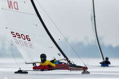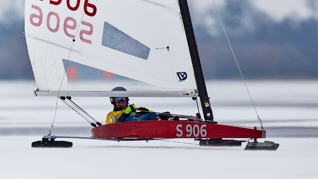Båt: DN (isjakt) med nummer S 906, ILCA och H-båt