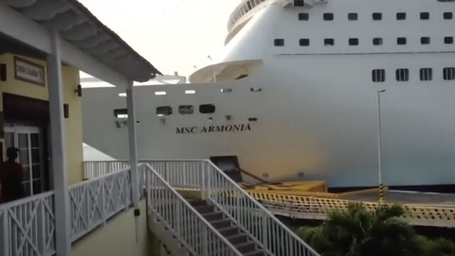Port Victoria, Seychellerna. Autospänning på förtöjningslinorna har sina fördelar, men inte alltid. Här här det just autospänningen som orskar första missödet i en serie av händelser som så småningom leder till grundstötning för både fartyg och assisterande bogserbåt.