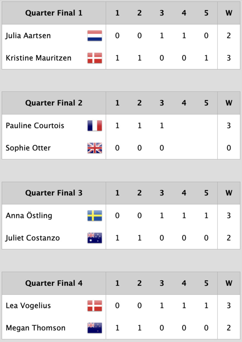 Här följer resultaten från kvartsfinalerna.